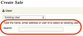 From the drop-down menu, select Existing User. In the text box that appears enter either the name, email address or user id of the user. A drop-down list will appear for all users who match that search criteria. Select the correct user and the system will auto-populate the billing address fields.