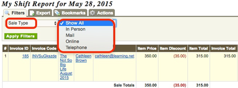 - Sale Type: If you select Sale Type, you can either select In Person, Mail, Online, or Telephone in the right drop-down menu.